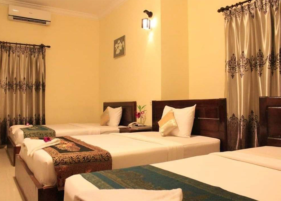 シェムリアップ市チュリーブ区クナール村の国道6A号線から約150m離れた場所に立地していて、什器・家具などはすべて揃っています。