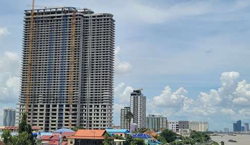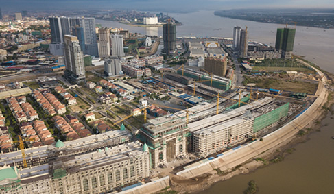 日本橋を渡って国道6A号線の左側で、約10年前にカナディア銀行系の開発会社が副都心開発に着手。埋め立てのためトンレサップ川を夥しい数の砂運搬船が行きかう姿も見てきた私自身が、副都心開発地に近く国道6A号線沿いにカナディア銀行が建設した、当時としては珍しかった高層アパートに居住しメコン川の眺望を楽しんでいました。この高層アパートからはメコン、トンレサップの両河川を見ることが出来ました。地価の平米単価は500ドル前後であった。現在は最低2,500ドル。10年で5倍、これが年率7%で経済成長を遂げてきたカンボジアの発展の証である。そしてこの地価の値上がりがシムリップ方面へと北上しています。